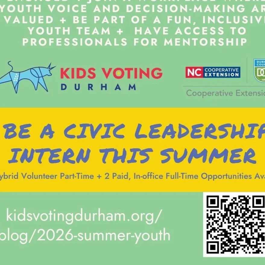 Youth 14-24, join the Kids Voting Durham Youth Civic Leadership team this summer and help youth be engaged and informed in the upcoming election!